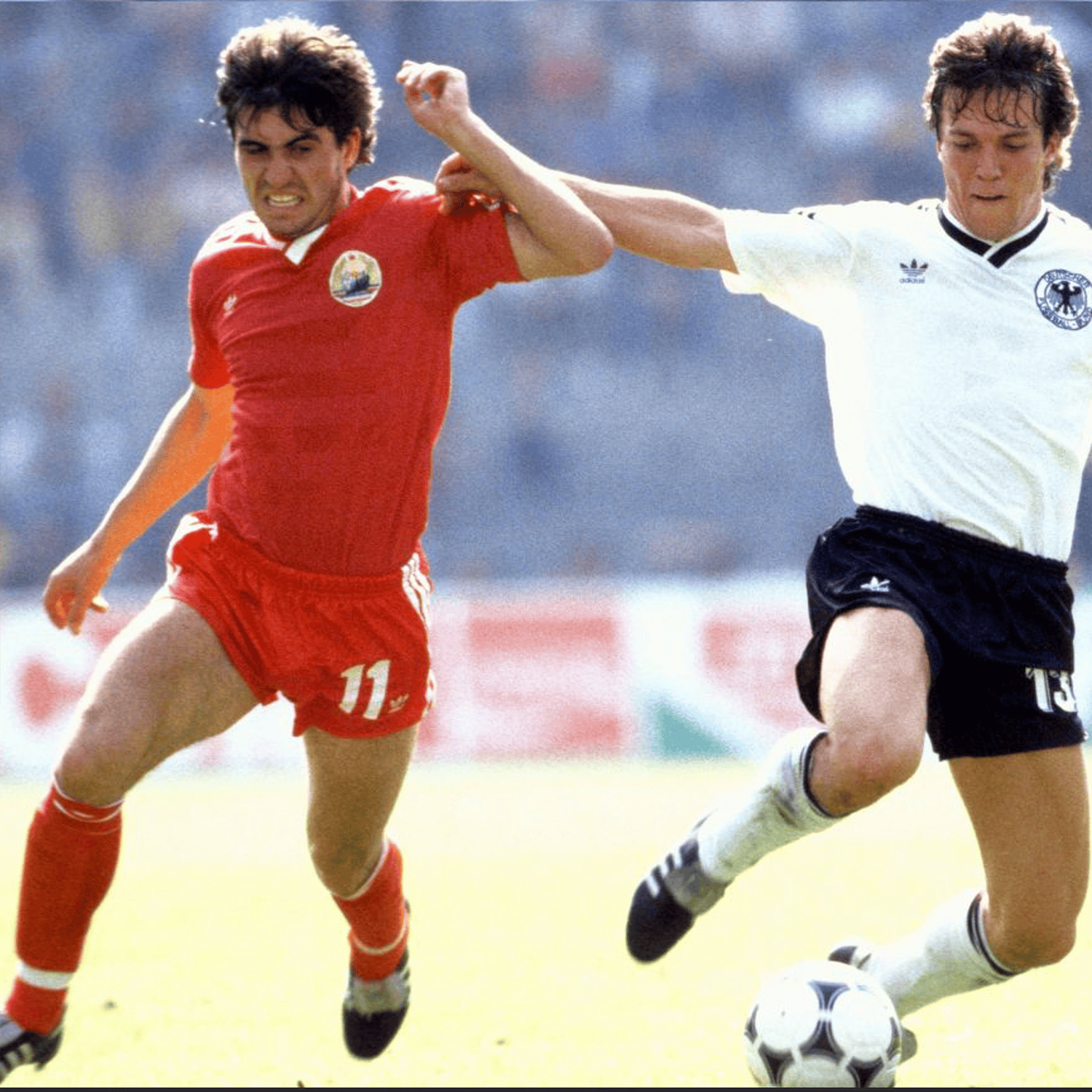 Gheorghe Hagi în duel cu Lothar Matthaus în meciul România - Germania de la C.E 1984