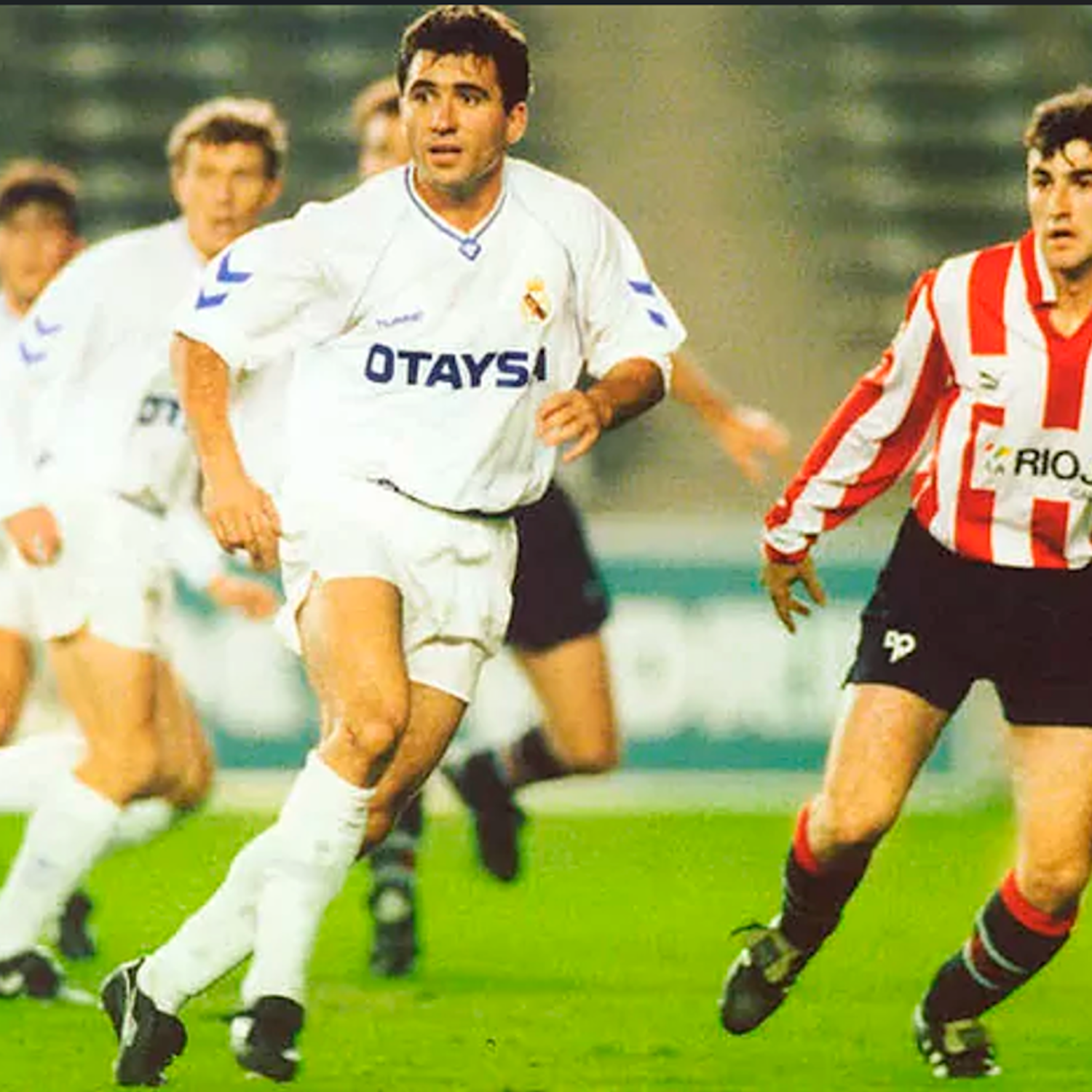 Gheorghe Hagi într-o partidă împotriva formației Sporting Gijon din Primera Division